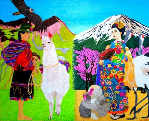 The composition of the painting recalls that of the cage in its dreamlike dimension: the protagonists are found in the middle of a group of heterogeneous animals - here, fish - whose beauty of shapes and colors seizes us.